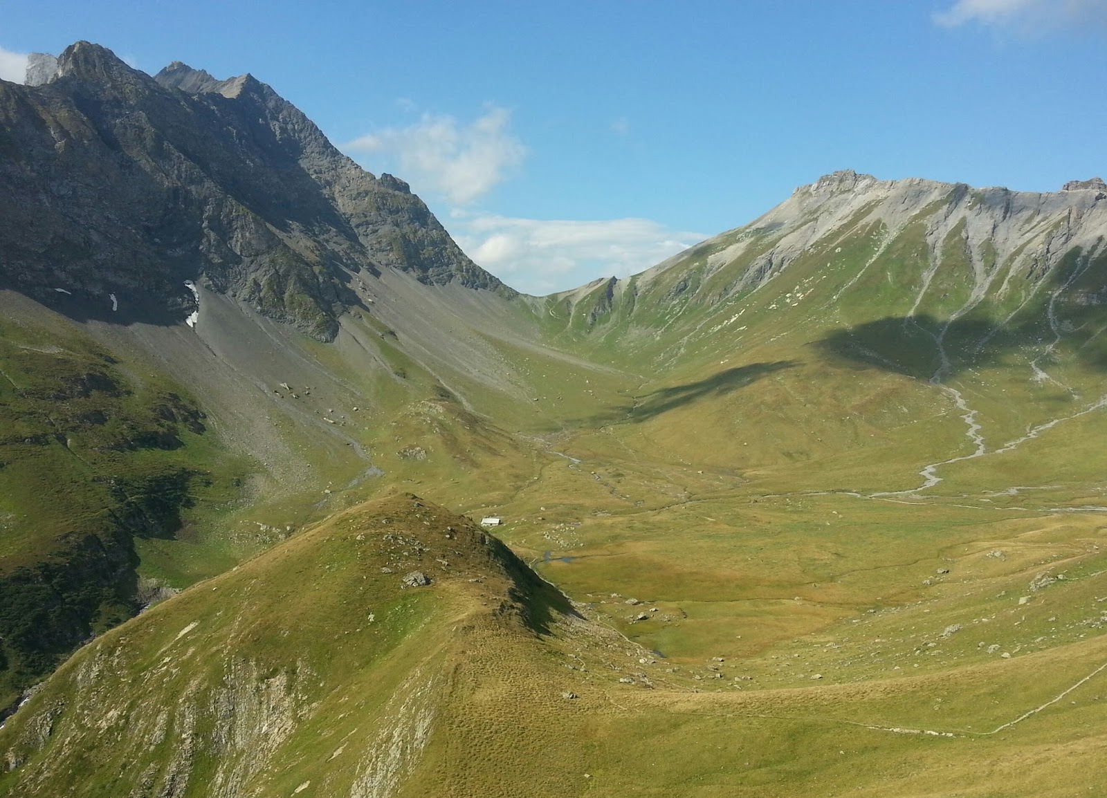 Steeply downhill for a long time, some of it along the top of old glacial moraines to the valley floor.