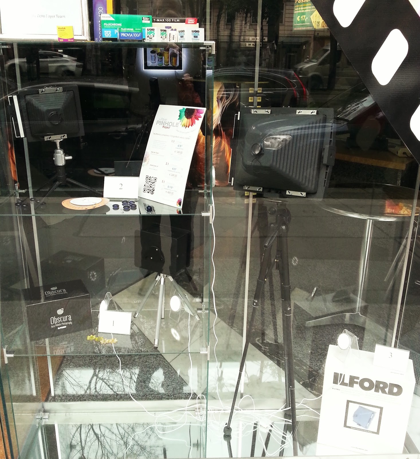 A large part of the shop window was given over to Ilford pinhole cameras, all three of them!