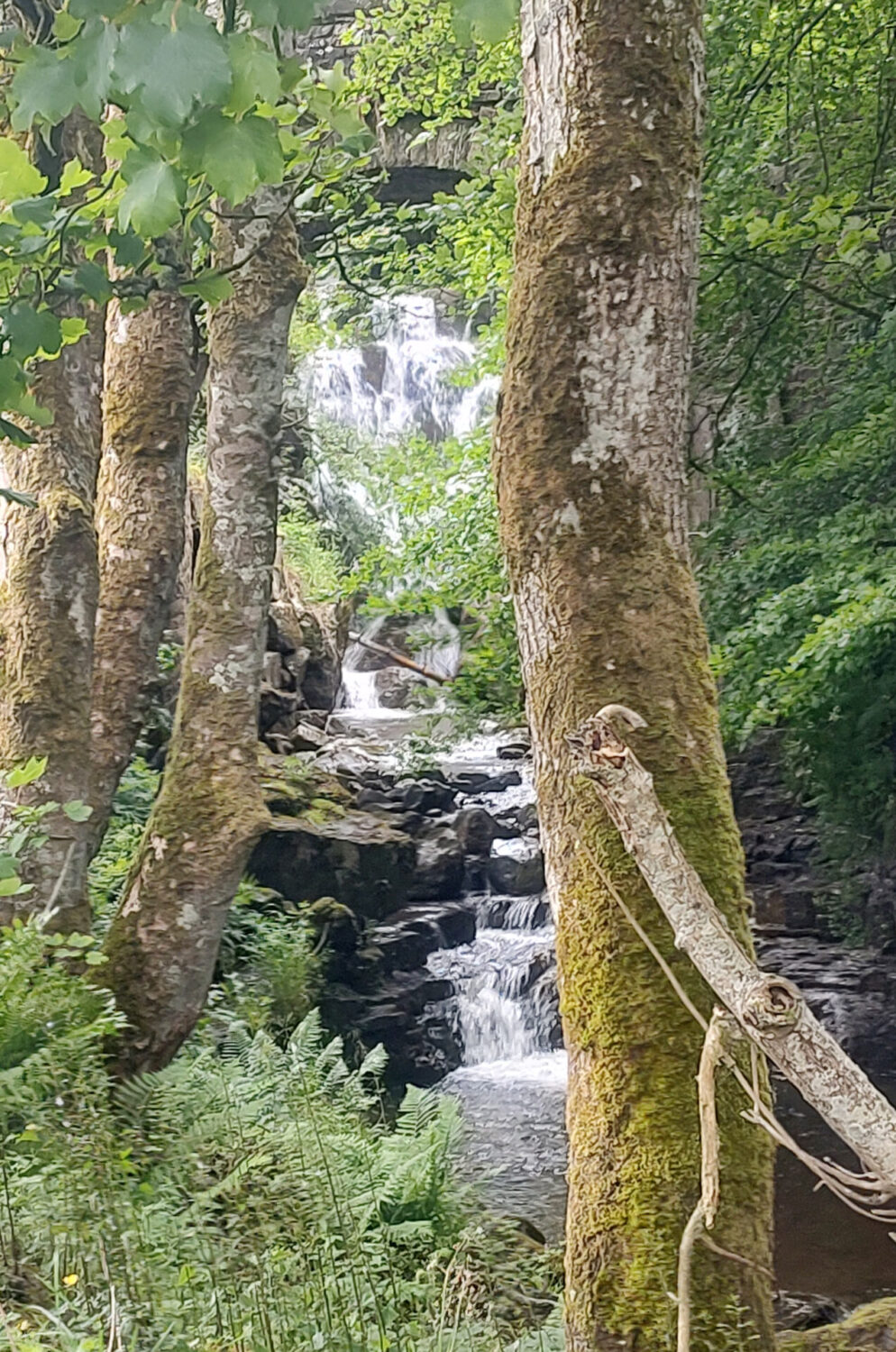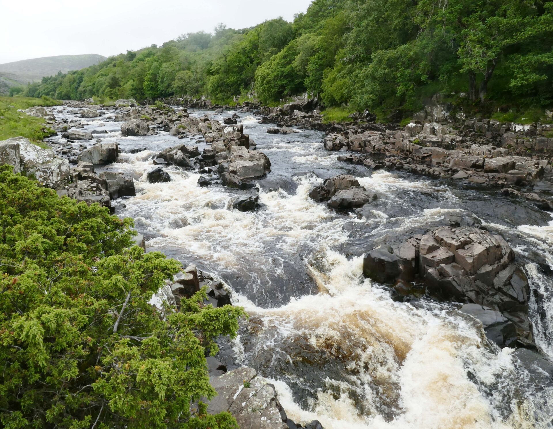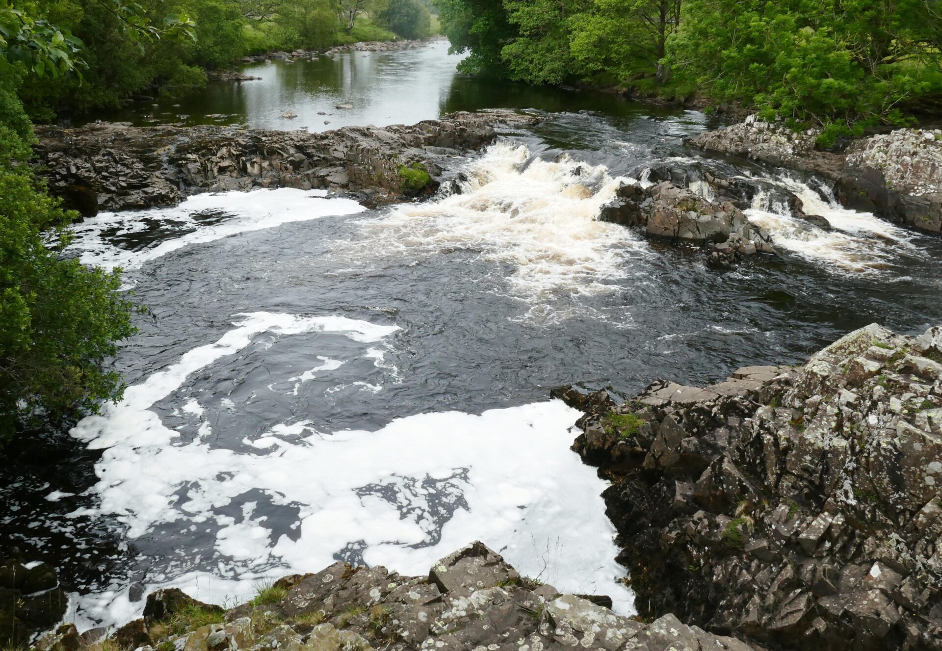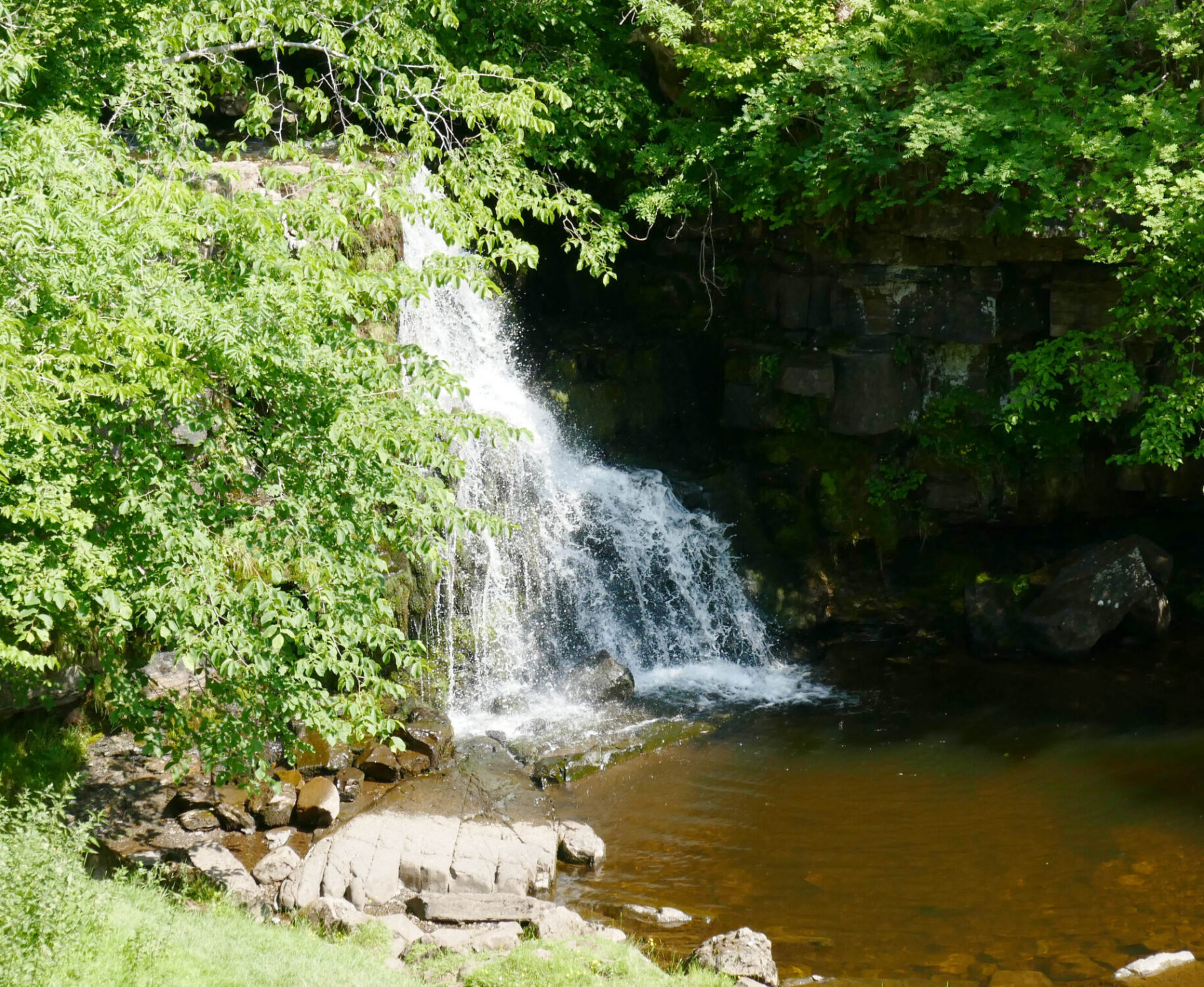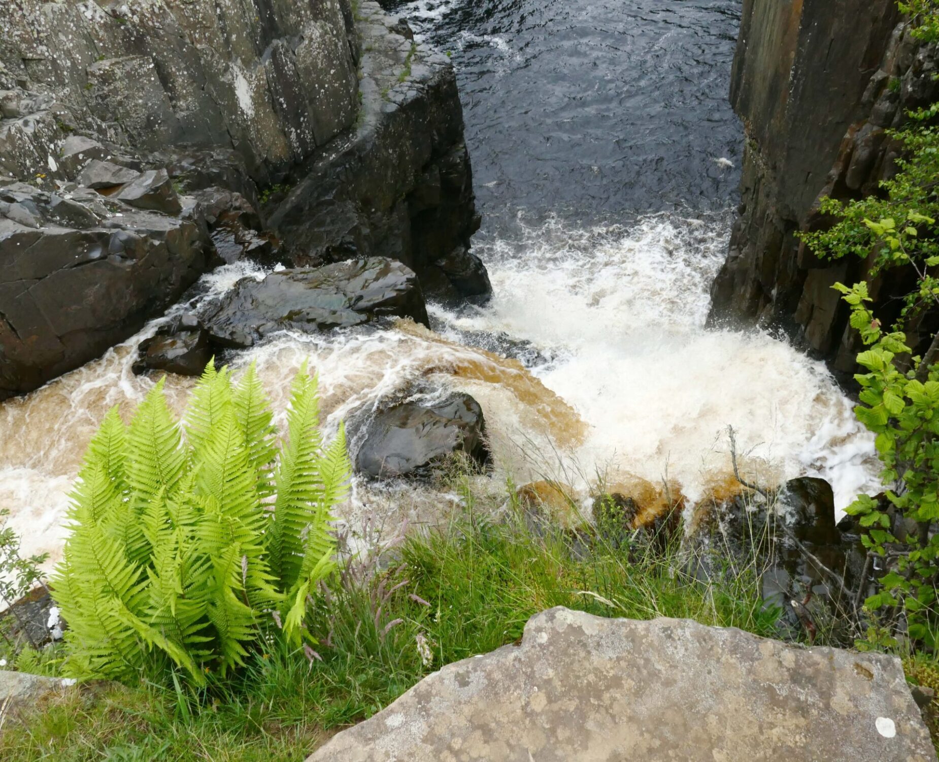 We reached the top of High Force at 11.20am, it was in full flow as you can see from the full frontal photo. I think it makes a better shot from this side of the river and it’s a free viewpoint whereas from the hotel side they charge a fee to see it.