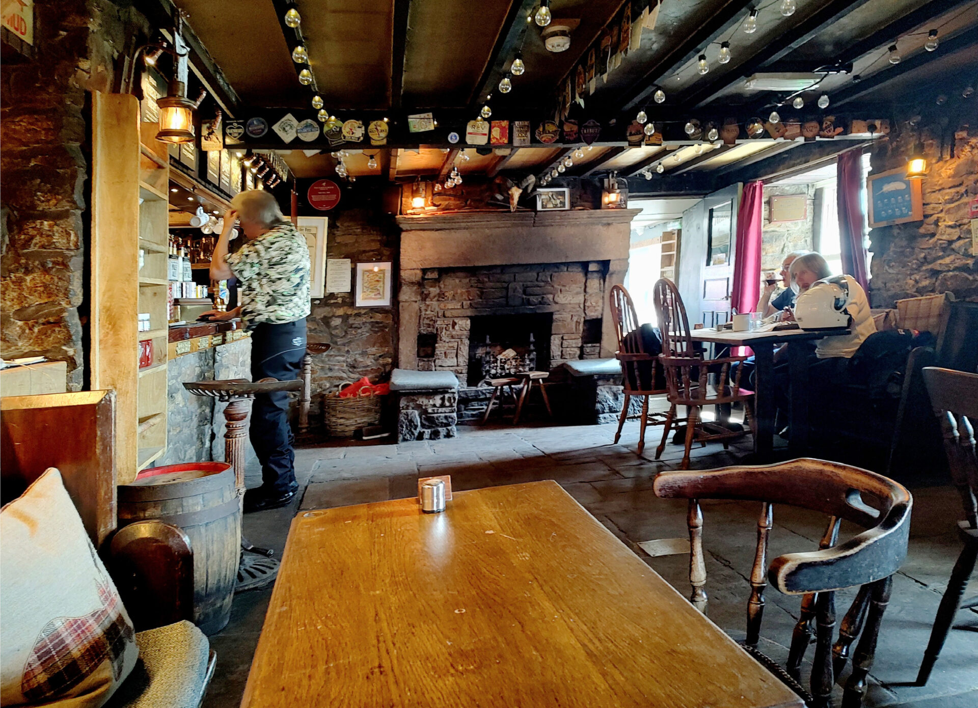 The New Inn looks like a traditional old village inn from outside but it was very modern and clean inside, including the bar, restaurant and rooms. Lots of people were sitting outside until an electrical storm rolled in and drove everyone except a dedicated smoker indoors. Staff had to go outside and drag the errant smoker inside as lightning was flashing every few seconds and he was standing under a garden umbrella beside a tree – not the best tactic to use!