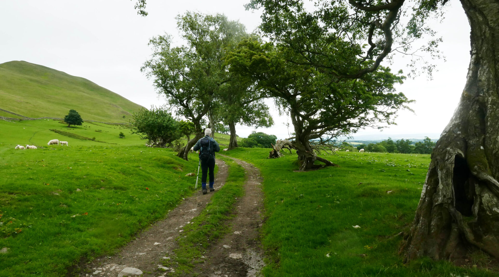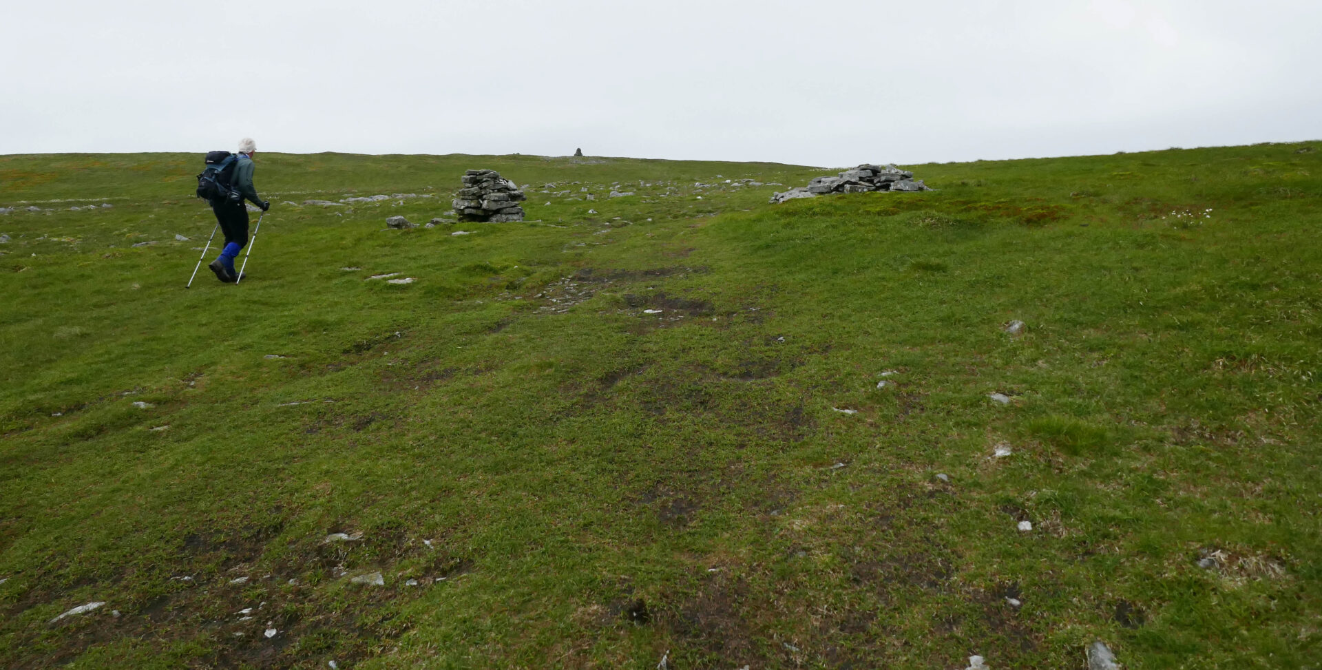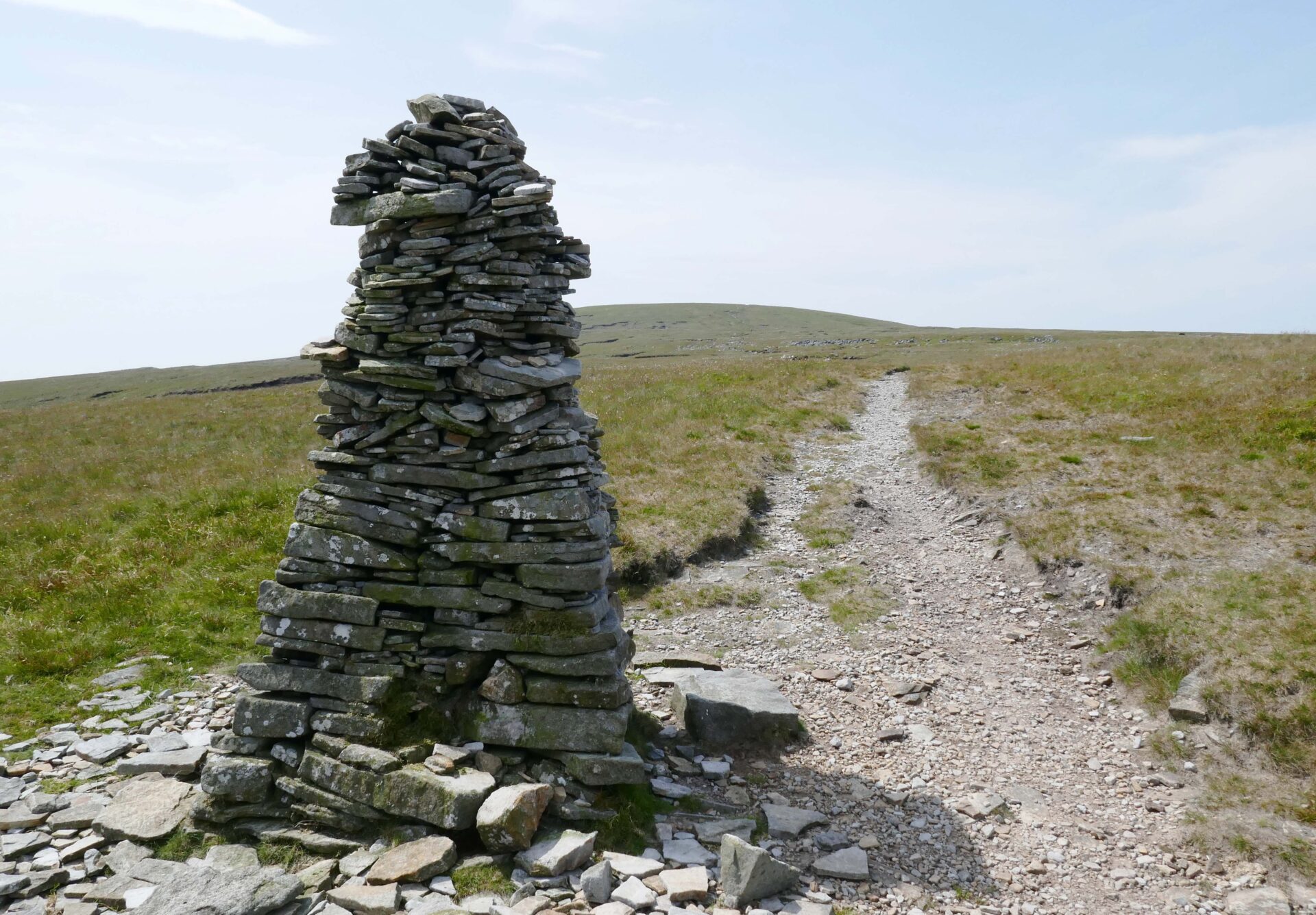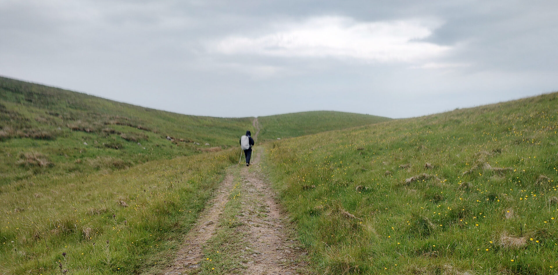 We were quickly climbing up the hillside on good paths to join a cart track around 10.30am and on to Cam High Road an hour later. This is an old Roman road. A walker with a sun brolly went past us heading north, that’s something you don’t see every day in the Yorkshire Dales! It must have come in handy later when we had heavy rain.