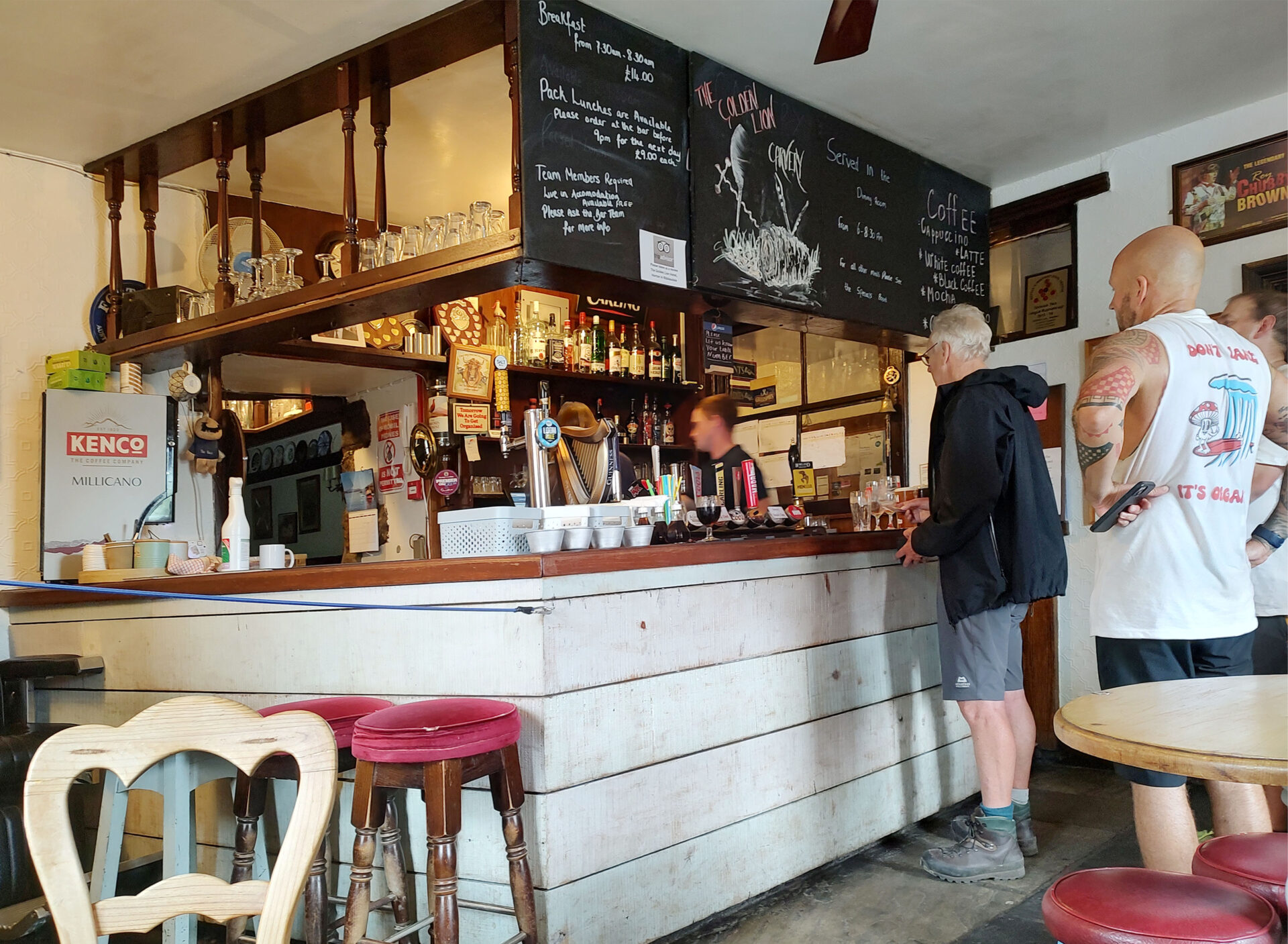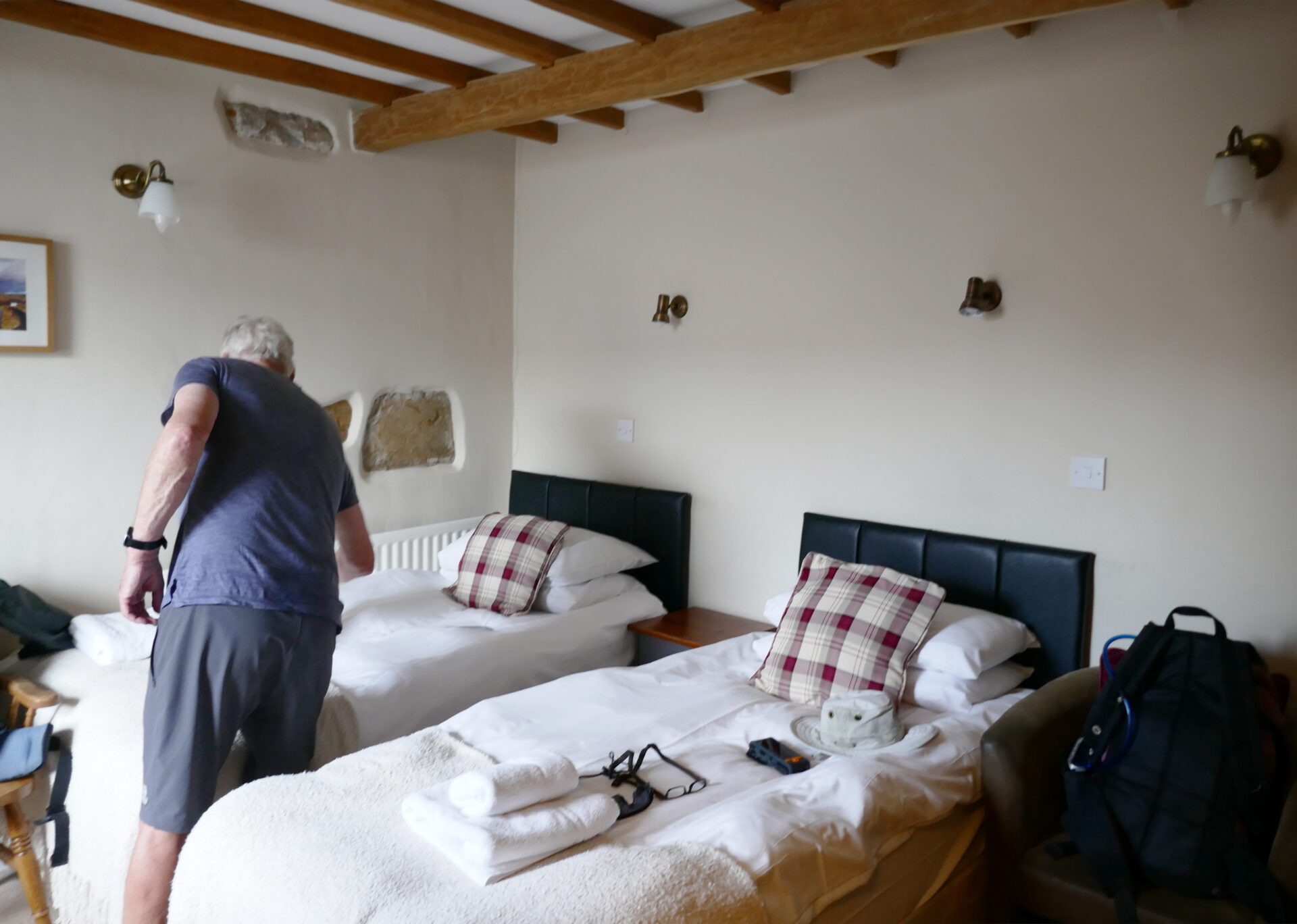 From here it was just over a few fields to Hawes and the Board Inn where we were staying in a twin room. We ate at the Fountain Inn just a few doors down, it was buzzing as they had the rugby on the TV which Al was keen to watch. The food and beer were both good here.