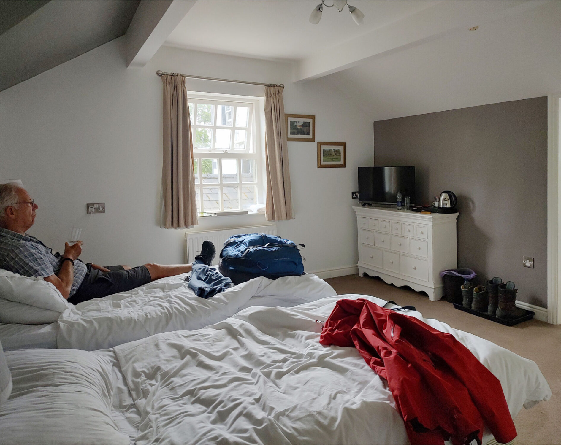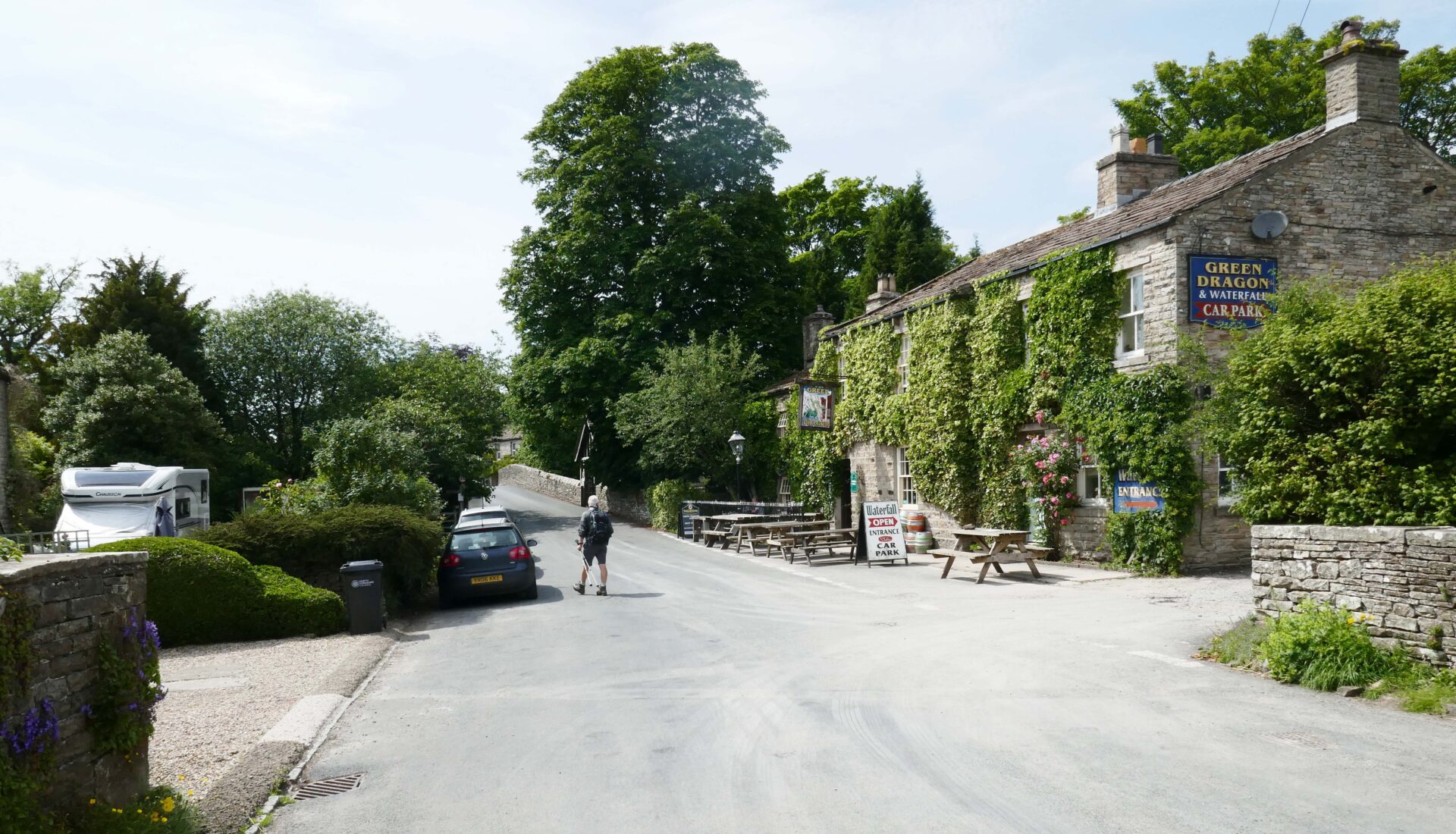 We finished this leg of the Pennine Way at 3pm in the Golden Lion bar. We had been unable to book any accommodation in Horton so Al collected his car from the campsite car park, after checking in the office that there was nothing extra to pay as it was there for half a day extra to what he had booked. All was fine so Al drove us the few miles to the village of Clapham where we were staying in the New Inn.