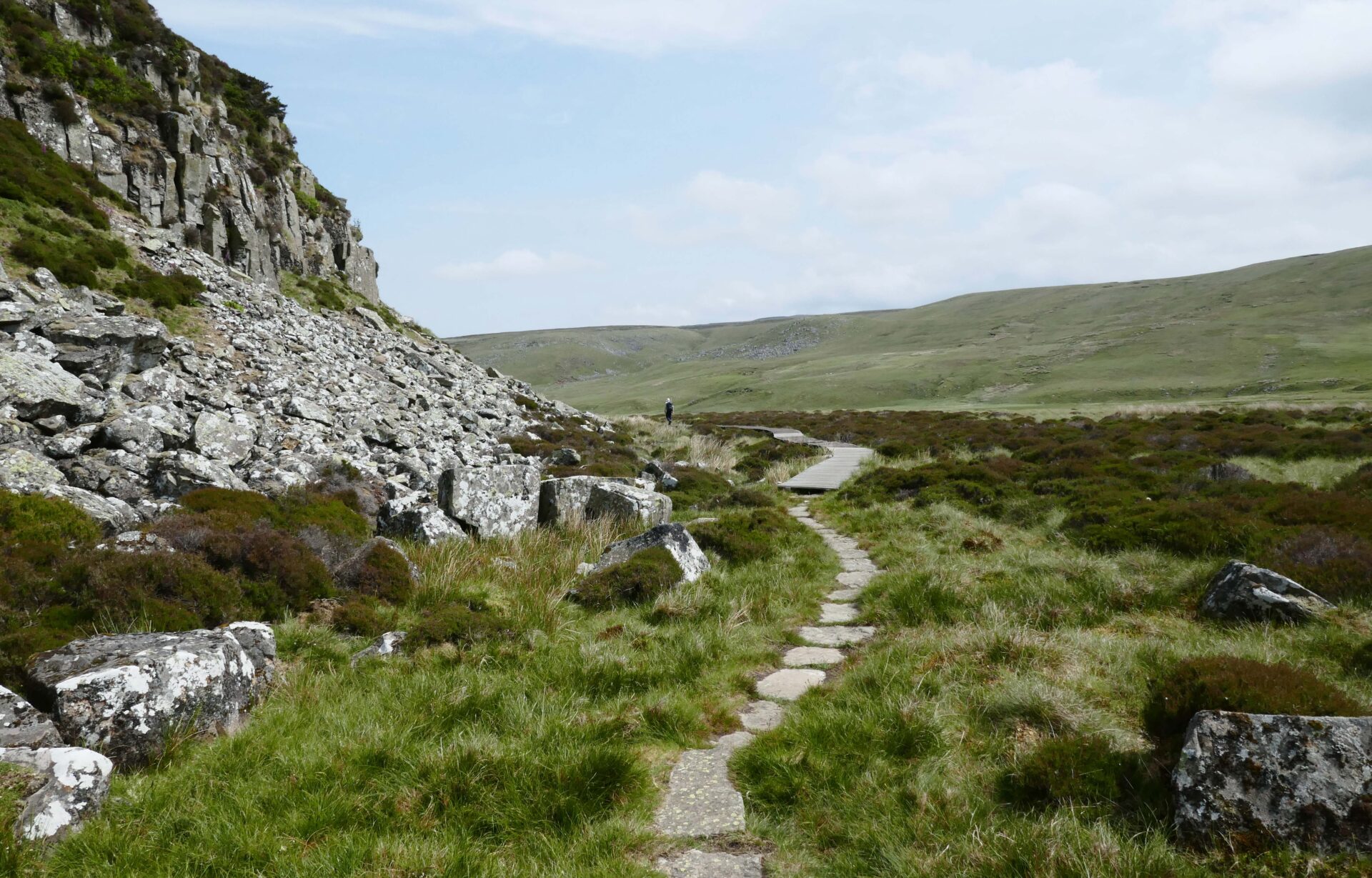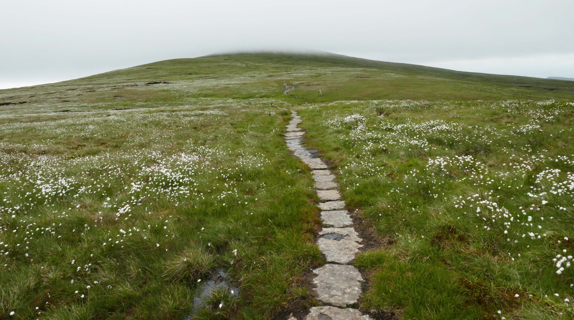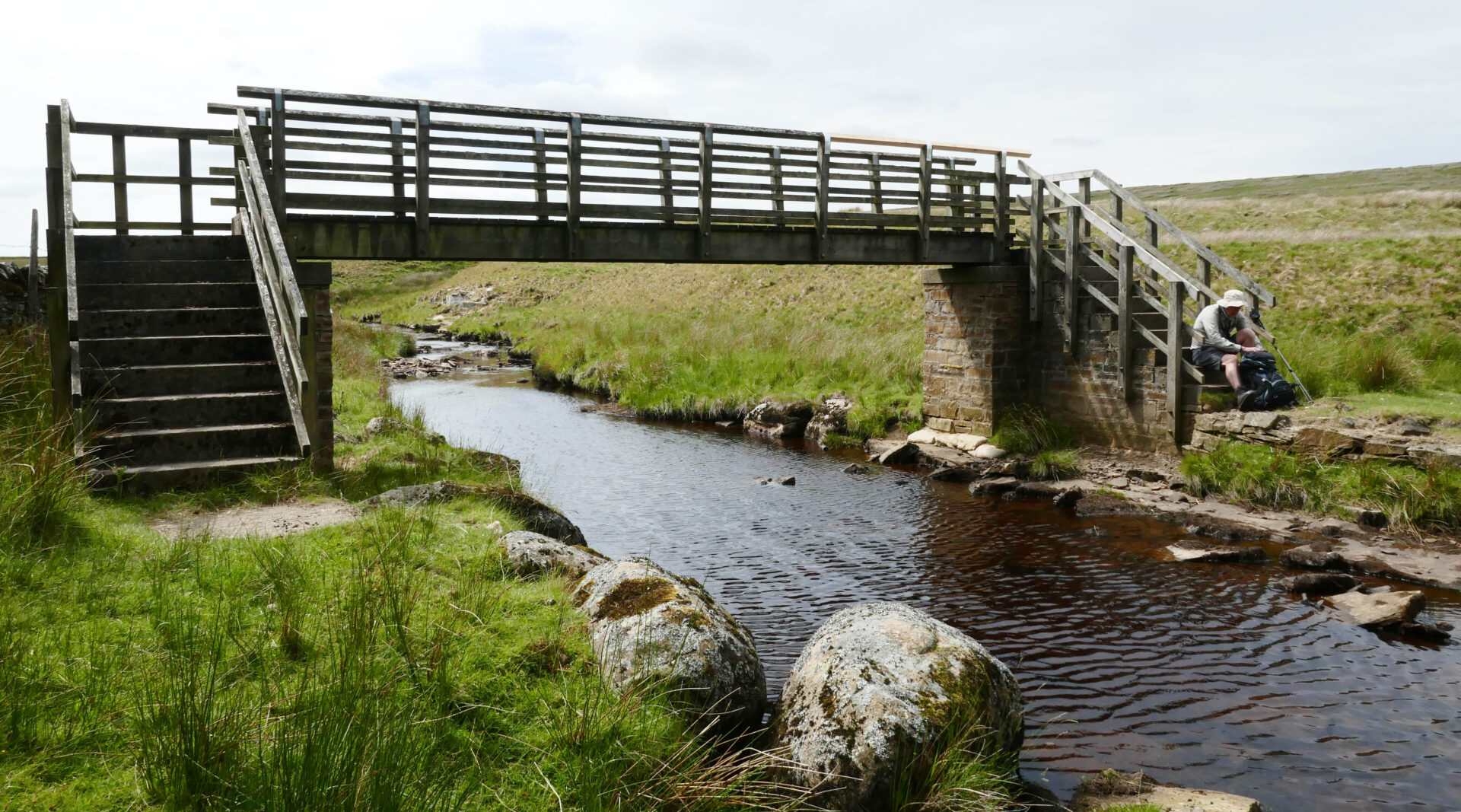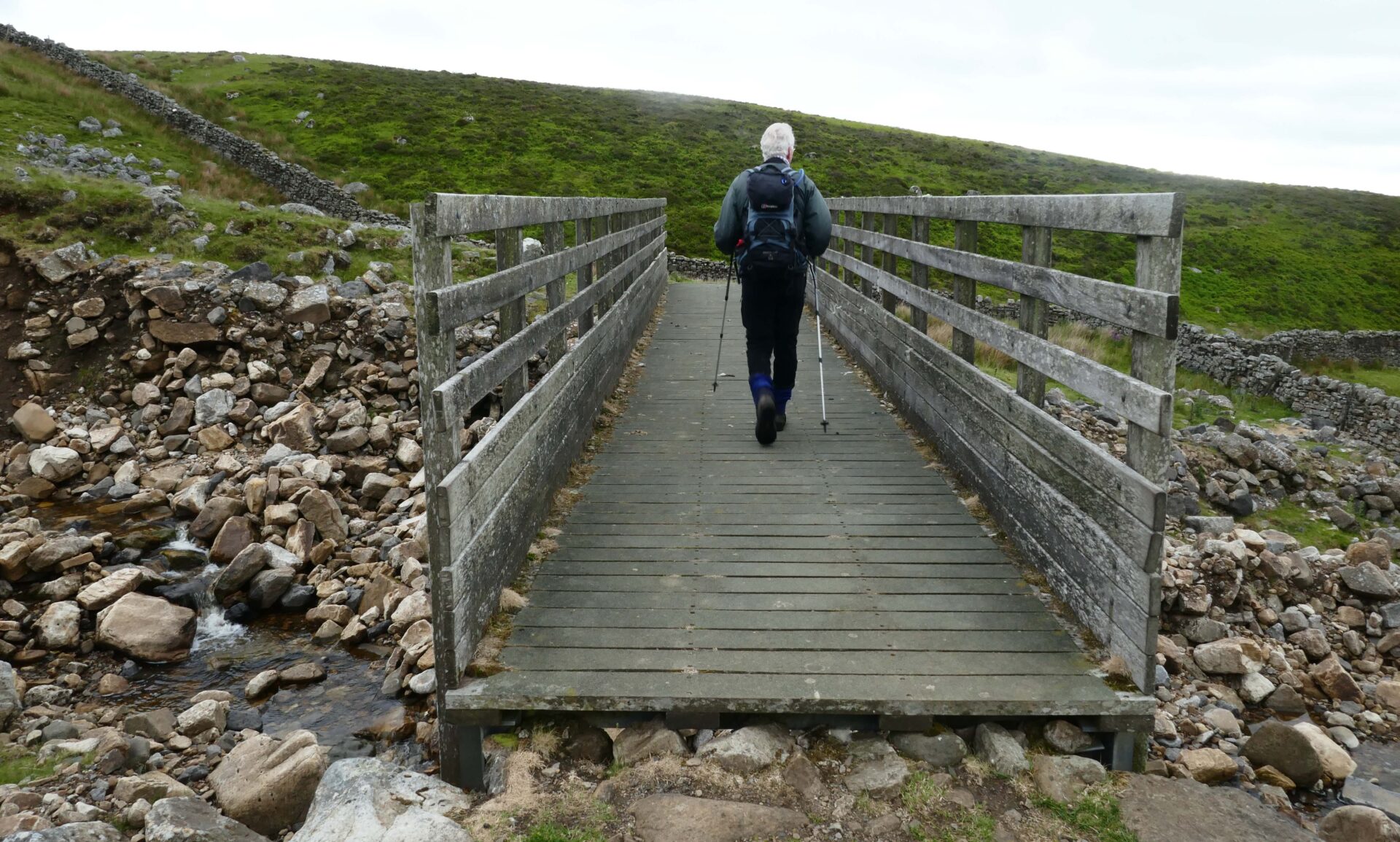Next, at 2.24pm, came Knock Old Man cairn and then it was down and out of the clouds to a substantial footbridge over a stream at 3.10pm.