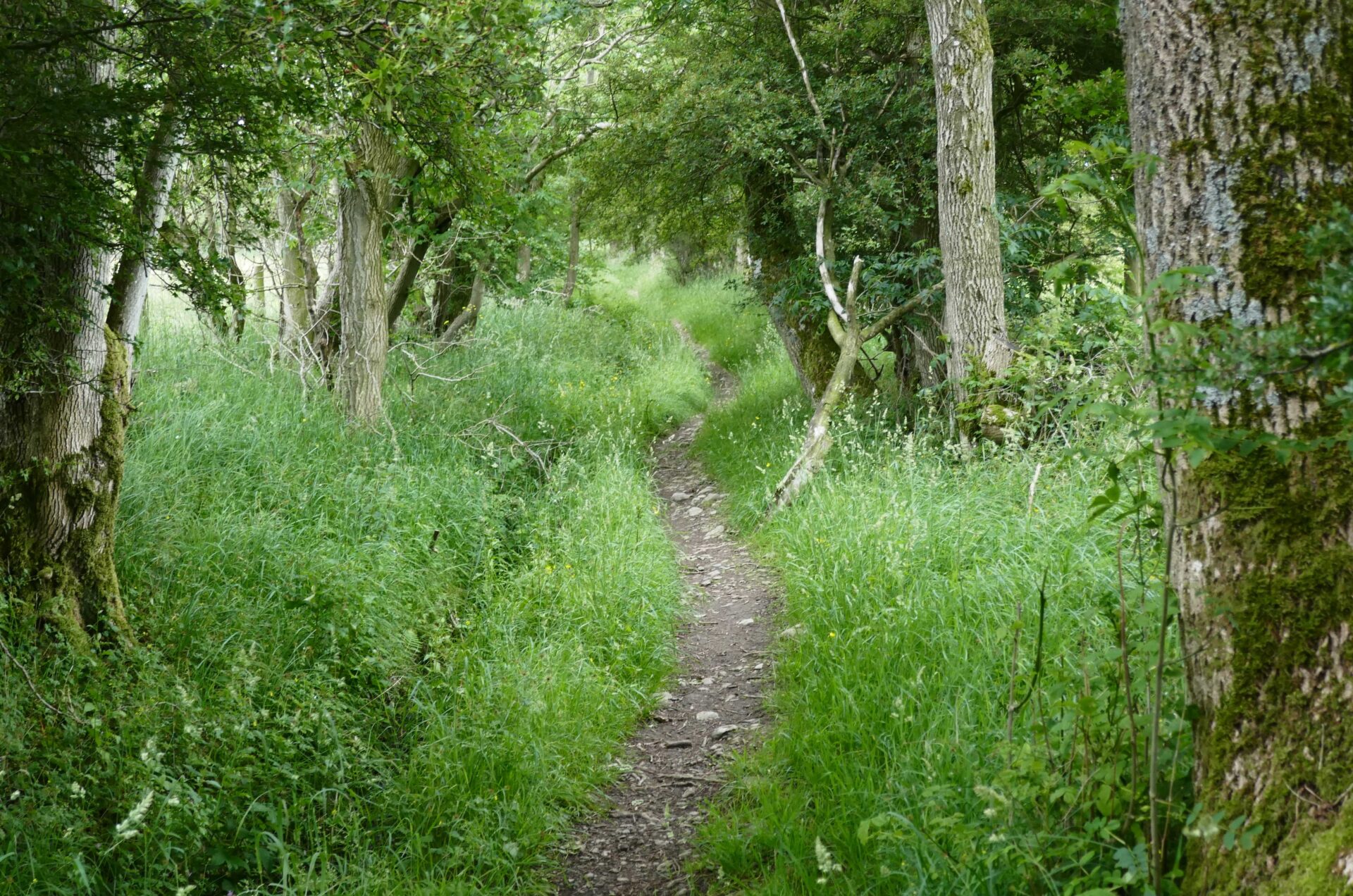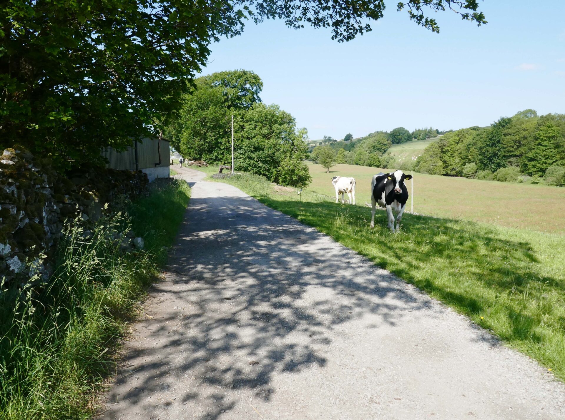 After a full cooked breakfast at 8am we started walking at 9.38am and retraced our route back over the bridge but continued straight up the road ahead. It was dull but the clouds were thinning quickly and we had blue sky from a bit after 10am.