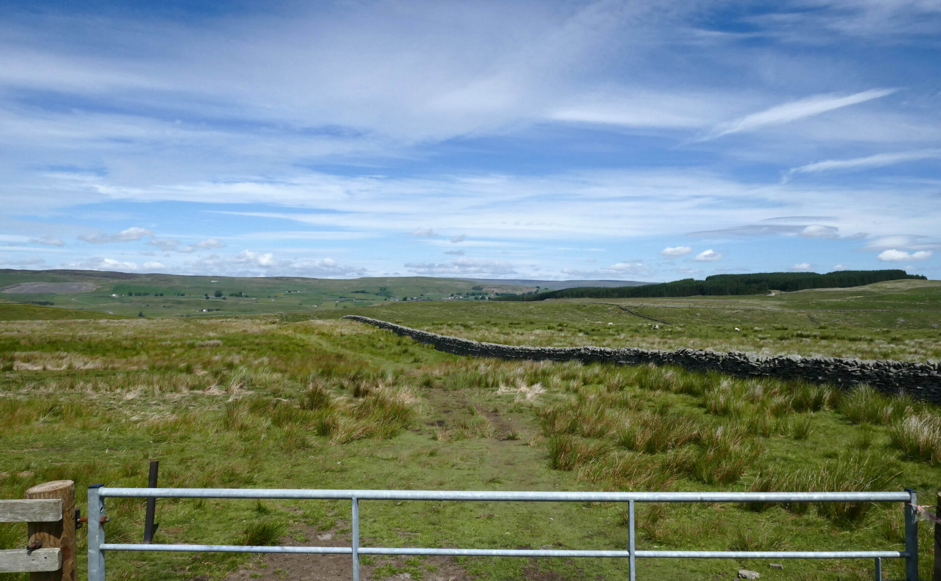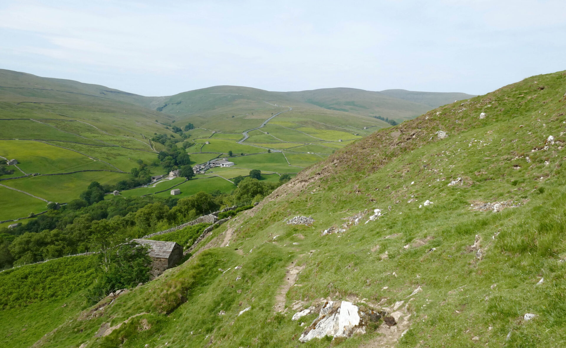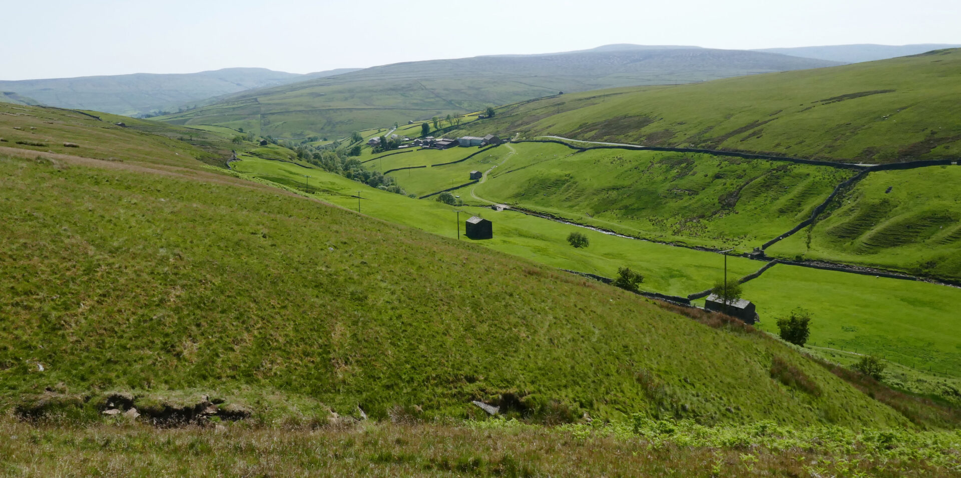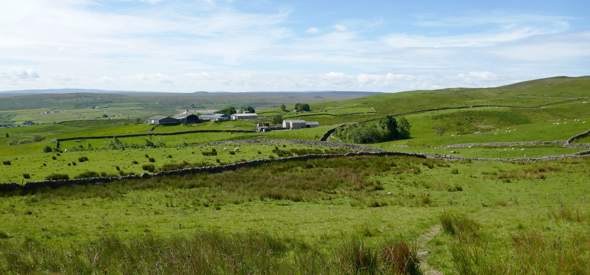 We were on our way before 9am, heading downhill back to the main Pennine Way route. This follows a good footpath high above the River Swale. There were good views across to Great Shunner Fell, our main peak of the day, before we descended to the small village of Thwaite.