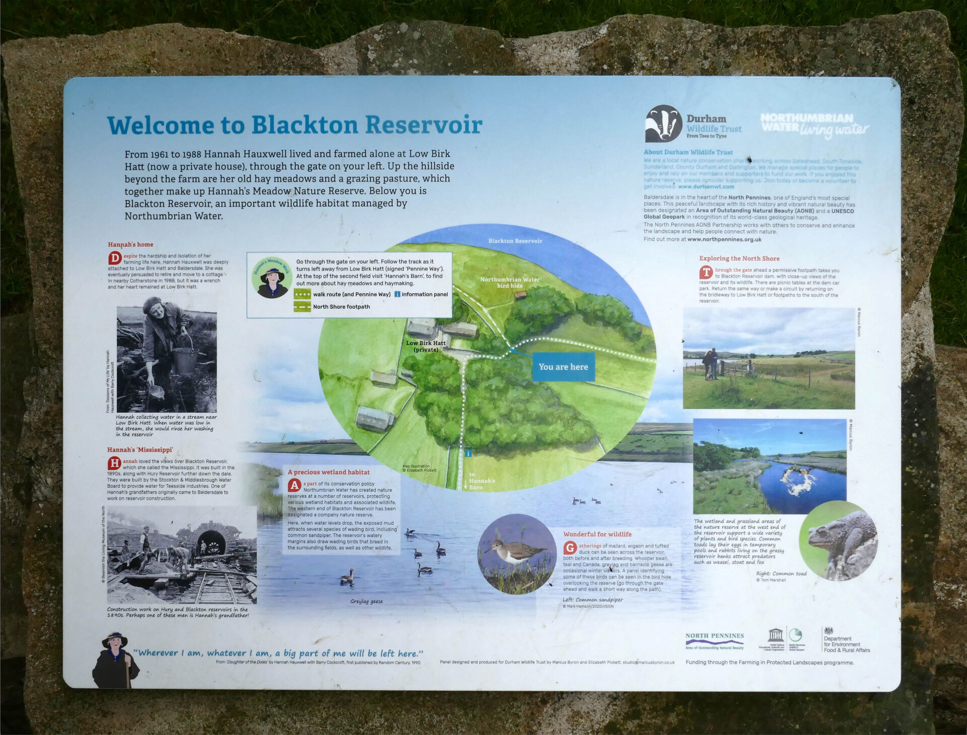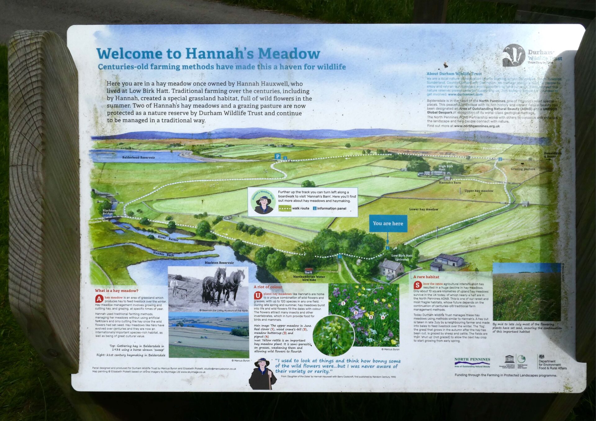 Within another hour we were at Blackton Reservoir and the home of Hannah Hauxwell. She became a bit of a TV celebrity for the basic farming life she had led for many years in her cottage without any modern facilities. I photographed the information board which describes her life and photographed her main meadow which was in full flower and was a mass of wild flowers as she didn’t use any modern fertilisers or chemicals on the land.