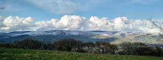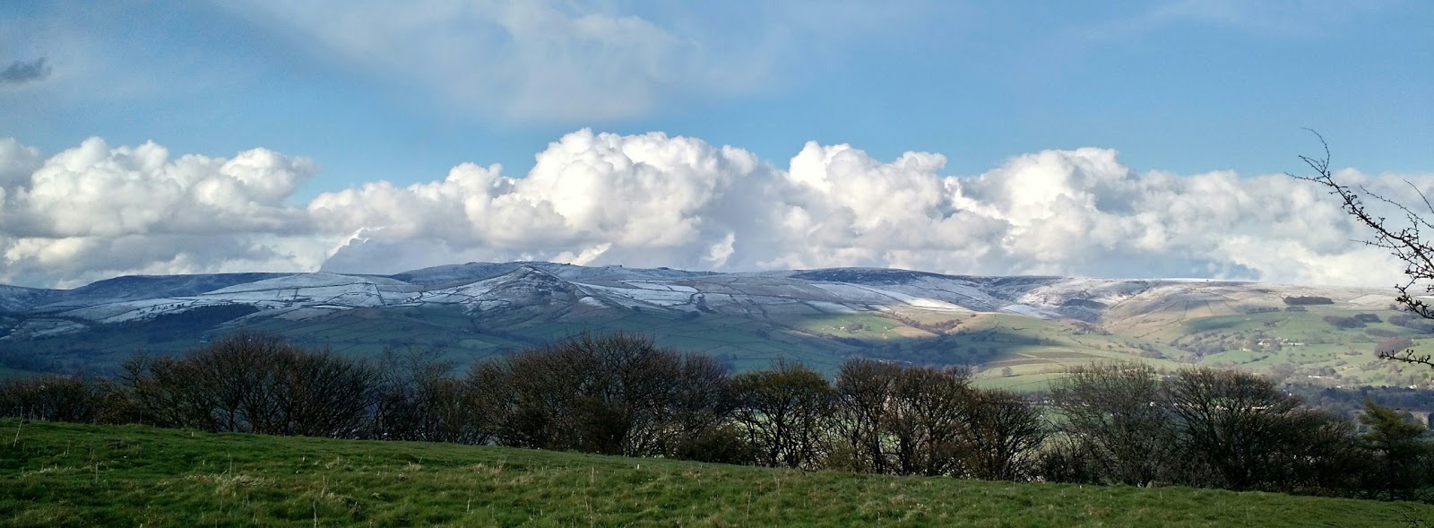 Wednesday 27th April 2016, view to Kinderscout with fresh snow and great clouds hugging the skyline.