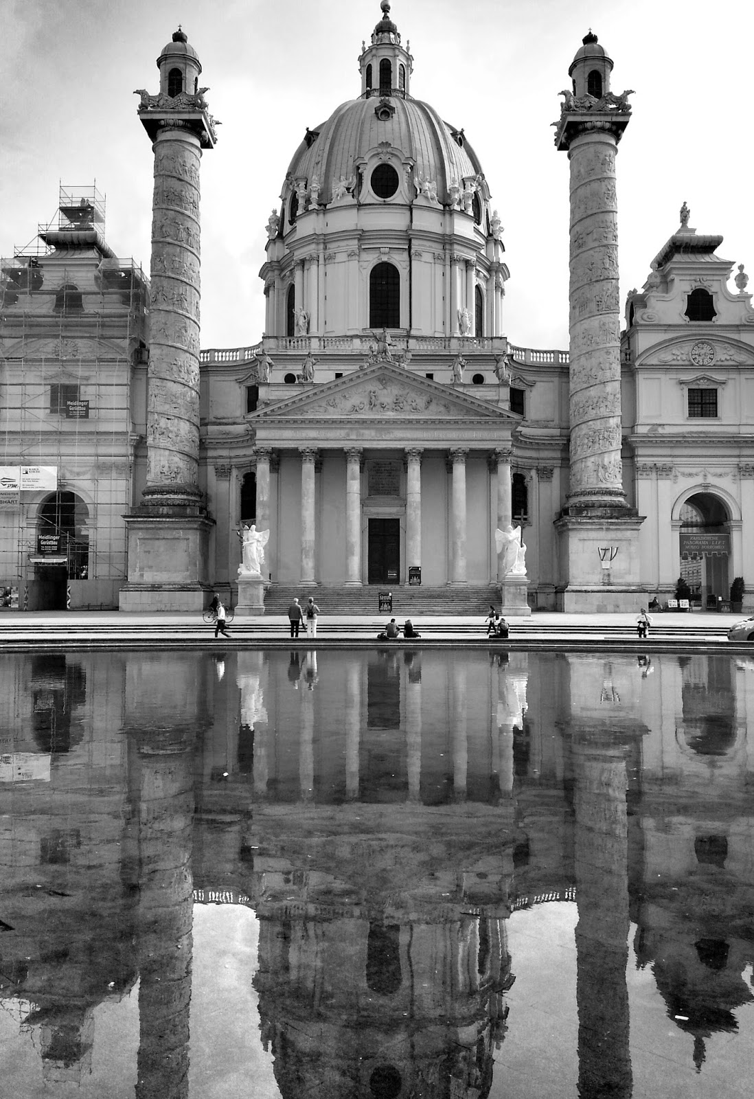 One of the places revisited was Karlskirche, with a reflection today.